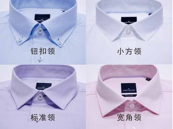 襯衫的領型有:標準領、中八領、小八領、大方領、中方領、小方領、尖角領、燕子領、一字領、直角立領、圓角立領及圓角領等。