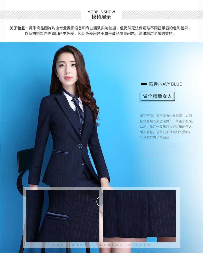 女款藍色單扣職業西裝定做