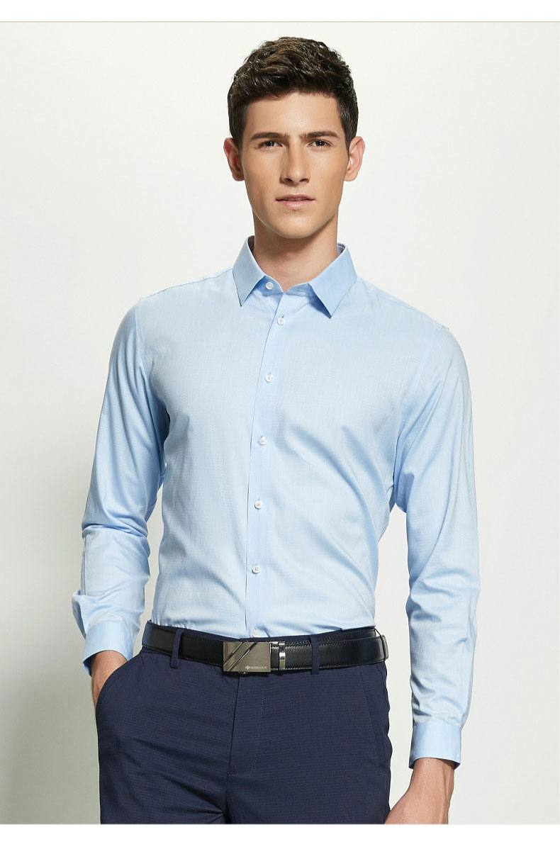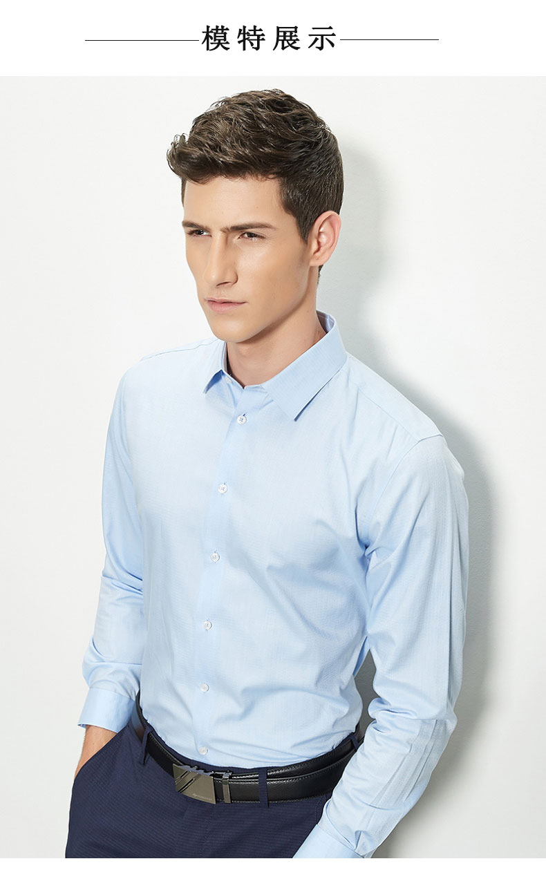 男士商務職業襯衫采用純棉面料制作,舒適柔軟,透氣吸濕,給人清爽的感覺.