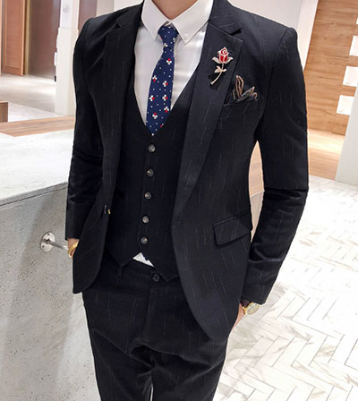 3、整體的搭配。對于西服來說,襯衫和領帶是標配。可根據(jù)不同的穿著場合進行合理搭配。例如黑色毛料西服,最適合會議、商務等較嚴肅的場所。可配淺色系襯衫,配以藍、灰色系領帶;灰色西服時,襯衫仍以淺色系為主,領帶的顏色則可明亮一些,如灰、黃色等。當然,我們的設計師還會告訴你最經(jīng)典的搭配,淺藍色或白色襯衫配純色或有明亮圖案的領帶。