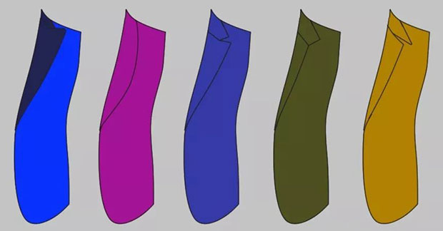 值得注意的是,夸張的領(lǐng)型設(shè)計會破壞男士西裝原有的、偏程式化風(fēng)格的視覺平衡,從而喪失男裝風(fēng)格原有的感覺和味道,因此,定制西裝的領(lǐng)型變化不宜過大。當(dāng)客戶在我們這里選擇定制西裝時,我們從西裝領(lǐng)型設(shè)計的疊門、駁頭翻折點的位置和翻駁領(lǐng)形狀及寬度這三方面內(nèi)容來為客戶搭配適合他們的西裝領(lǐng)型: