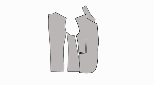 如下圖所示,標準體型的西服樣板,衣身結構由前片、側片與后片構成。其中,后身與前身的袖籠深接近一樣長(胸圍線以上至上平參考線),后身腰節位置大約占1/4身高,后衣長一般比1/2全身長度略短。