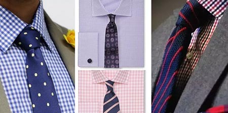在考慮襯衫與領帶的色彩圖案搭配時,最重要的一點是突出二者的對比,如條紋襯衫配素色或格紋領帶;格紋襯衫配點紋或斜紋領帶等等,但這都不是絕對的,只有通過不斷的嘗試,才能搭配出即統一又不死板的視覺效果。